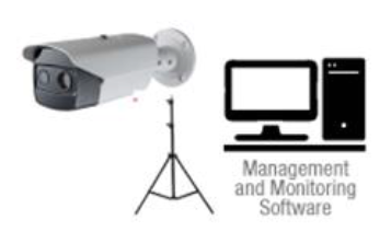 Las cámaras son duales (imagen térmica y visible) para identificación visual de los sujetos e incorporan funcionalidades de Inteligencia Artificial para fijar las áreas de medición a los cuerpos humanos (detección de caras en una misma escena), reduciendo así las falsas alarmas causadas por otras fuentes de calor.
